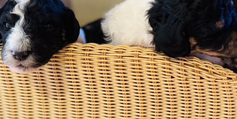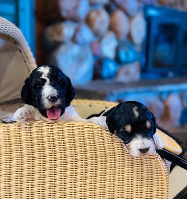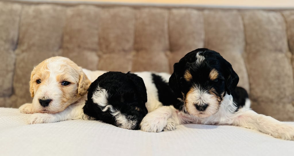Hand-raising joyful Bernedoodles with love, ensuring a wonderful addition to your family.
