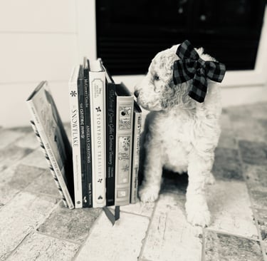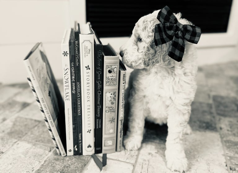 "Green Gables” is more than a place, it’s a nod to our literary love, “Anne of Green Gables.” At our house: we love books and puppies! Of course, our very first litter had to have literary-themed names: Snow White, Happy, Grumpy, Doc, Bashful, Sleepy, Sneezy, Dopey (later, “Zoey,”) Hansel & Gretel. Our 2nd litter was given names inspired by some of our favorite folk-tales and tall-tales from American literature and history: Paul Bunyan, Babe the Blue Ox, Lucette "Lucy" Bunyan, Paul Jr., Betty Bunyan, Johnny Appleseed, Davy Crockett, Sally Ann Thunder Ann Whirlwind Crockett (Sally Ann for short ;), Daniel Boone and Calamity Jane. (Sounds like a wild crew- but they were oh, so sweet!)