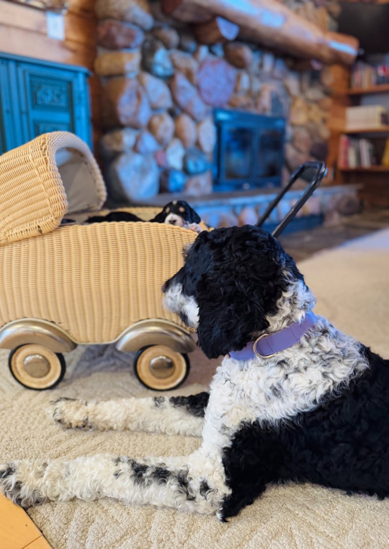 When we were dating in college, we dreamed of marriage, babies and a Golden Retriever. For our wedding present to each other, we added our beloved Golden Retriever to our family. She was our world and our first “baby” before any little humans arrived. As she aged and our family grew, it became apparent that one of our children was allergic to her. We brushed her, kept her hair short, and vacuumed like crazy until she passed away just shy of 10 years. It was then we switched over to being a “Doodle Family,” with the addition of our Goldendoodle. Two years later, we added our Bernedoodle and yes- totally fell in love with Bernedoodles! We love her balance of playful with being laidback and having an easy temperament. She has been a wonderful addition to our family for so many reasons, and was a very comforting and healing presence for us during a season of grief.