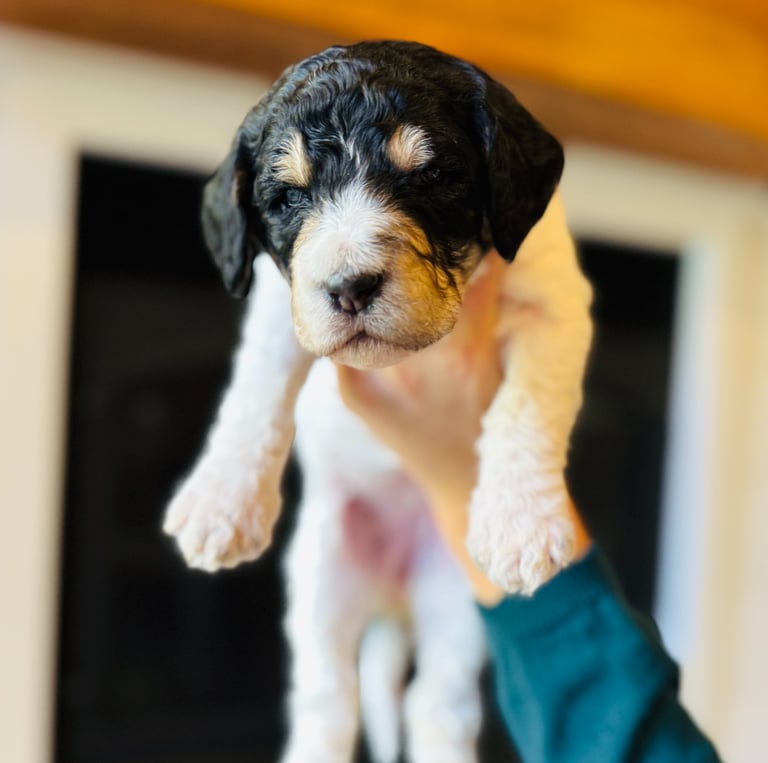 Located in a loving home, we family-raise our Bernedoodles with joy, ensuring they are well-socialized and ready for their fur-ever families.