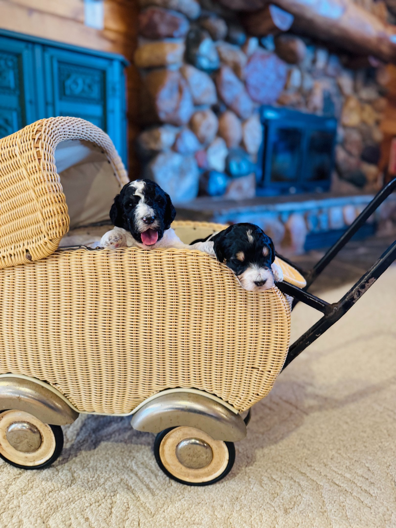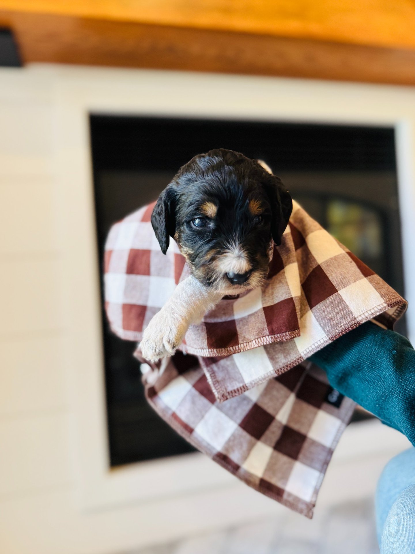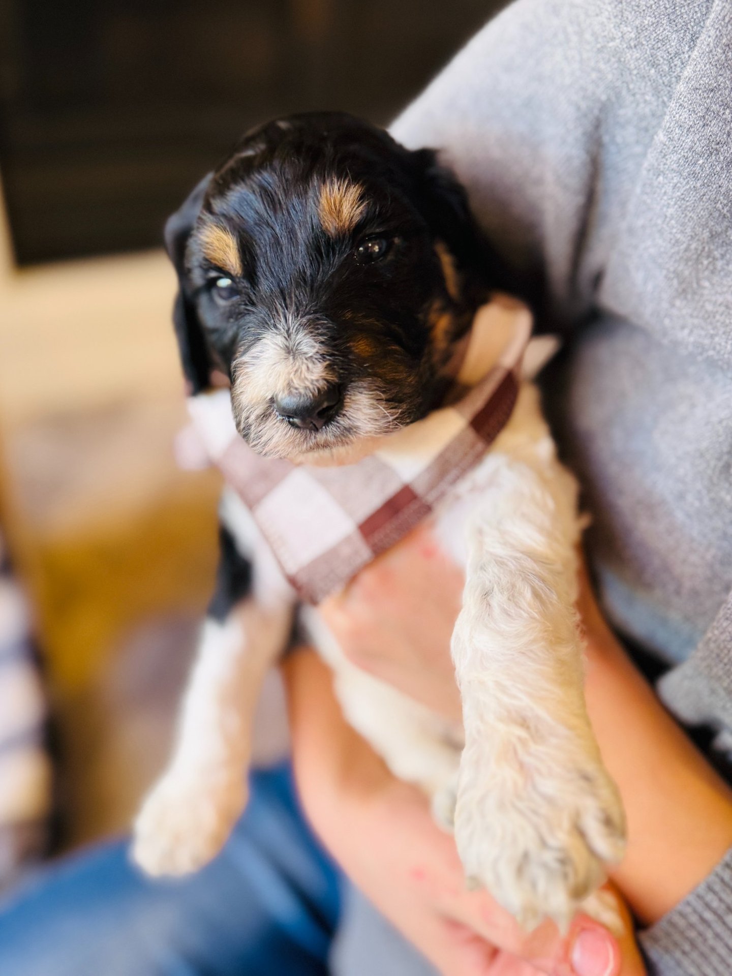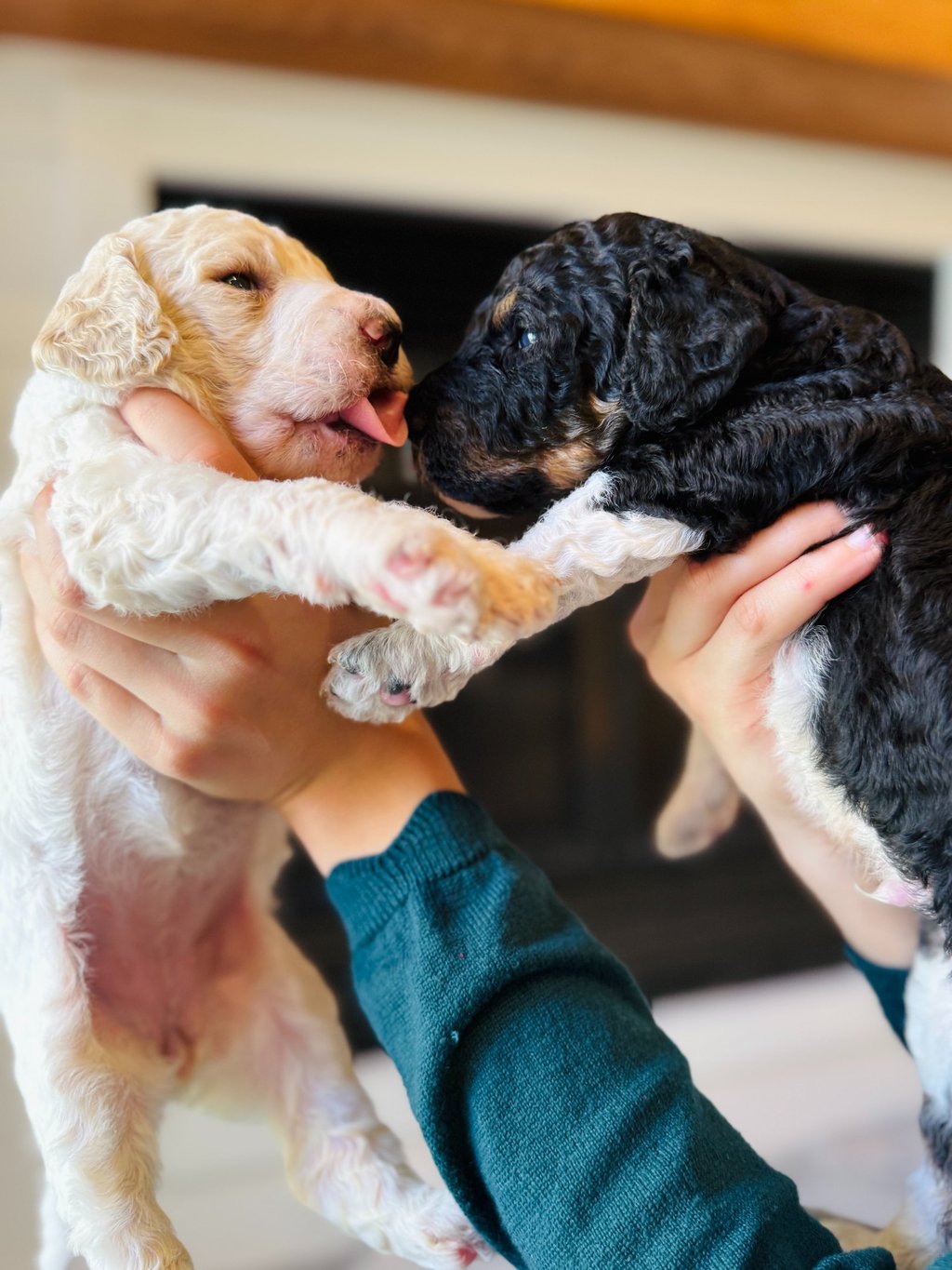 "Green Gables Bernedoodle puppies are raised in a loving family atmosphere. The puppies come to their forever homes well sensitized with children, other pets, and desensitized to what we consider day to day, but to a puppy, can be scary and intimidating. The puppies come to their forever home box trained (think litter box) which makes the next steps in the potty training process that much easier. If you are looking to add a well-adjusted, loving family member to your home, be sure to look into the possibility of a Green Gables Bernedoodle puppy. You won't be disappointed!"