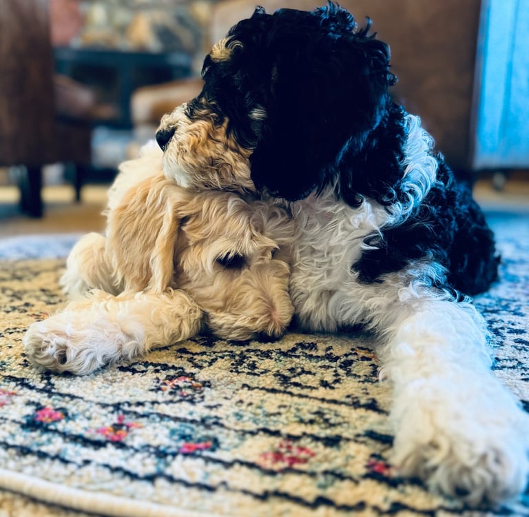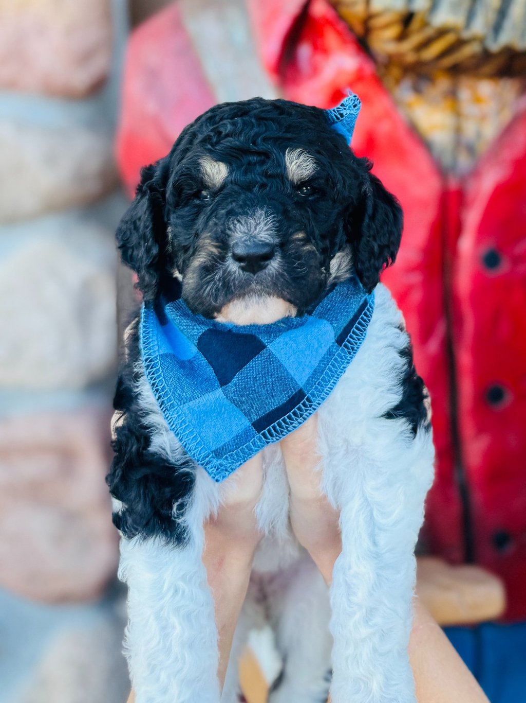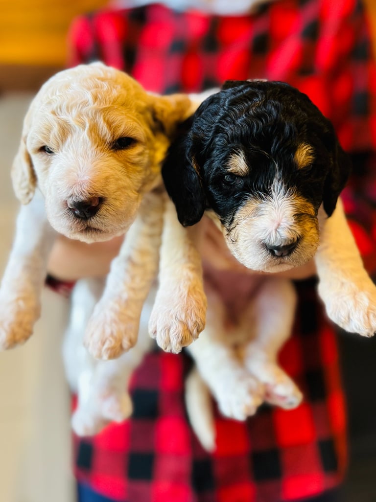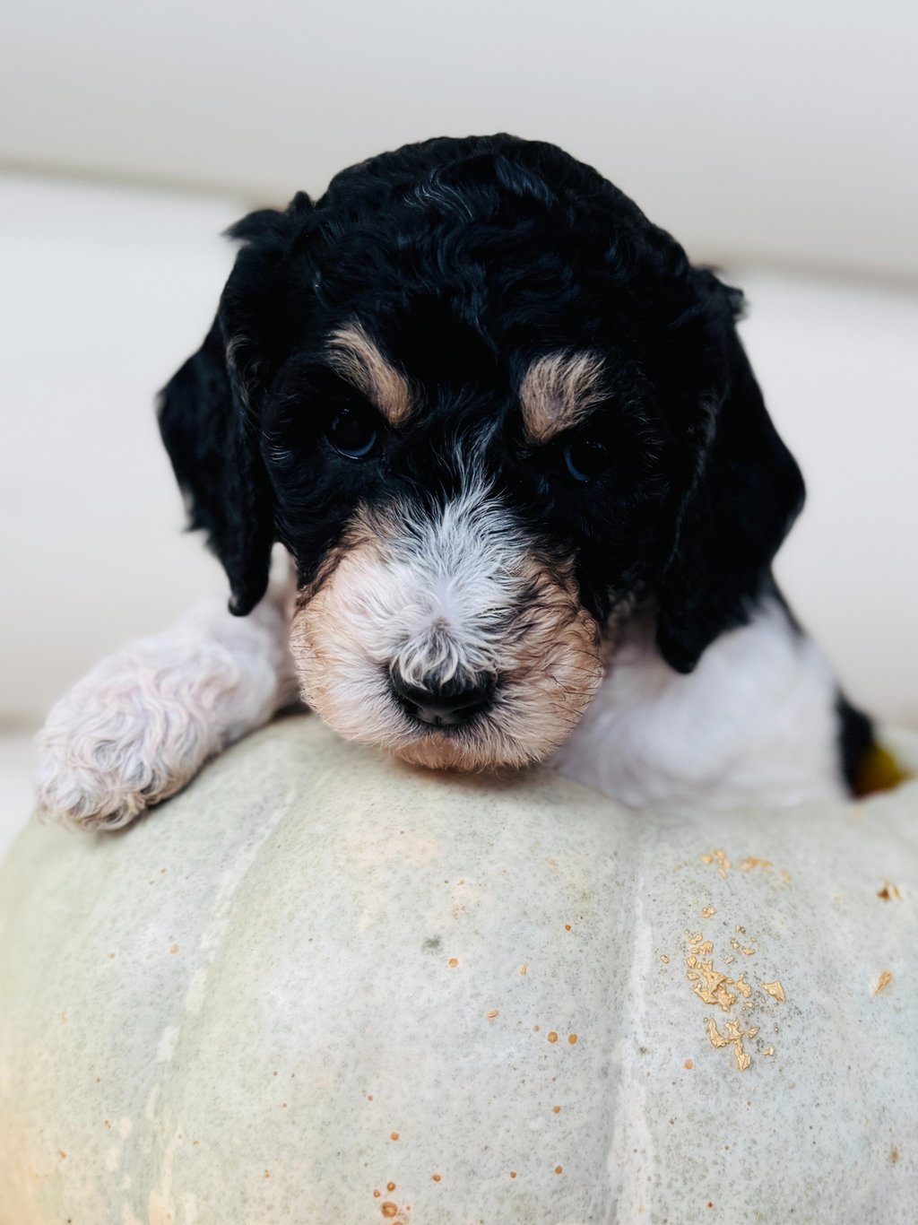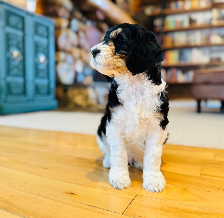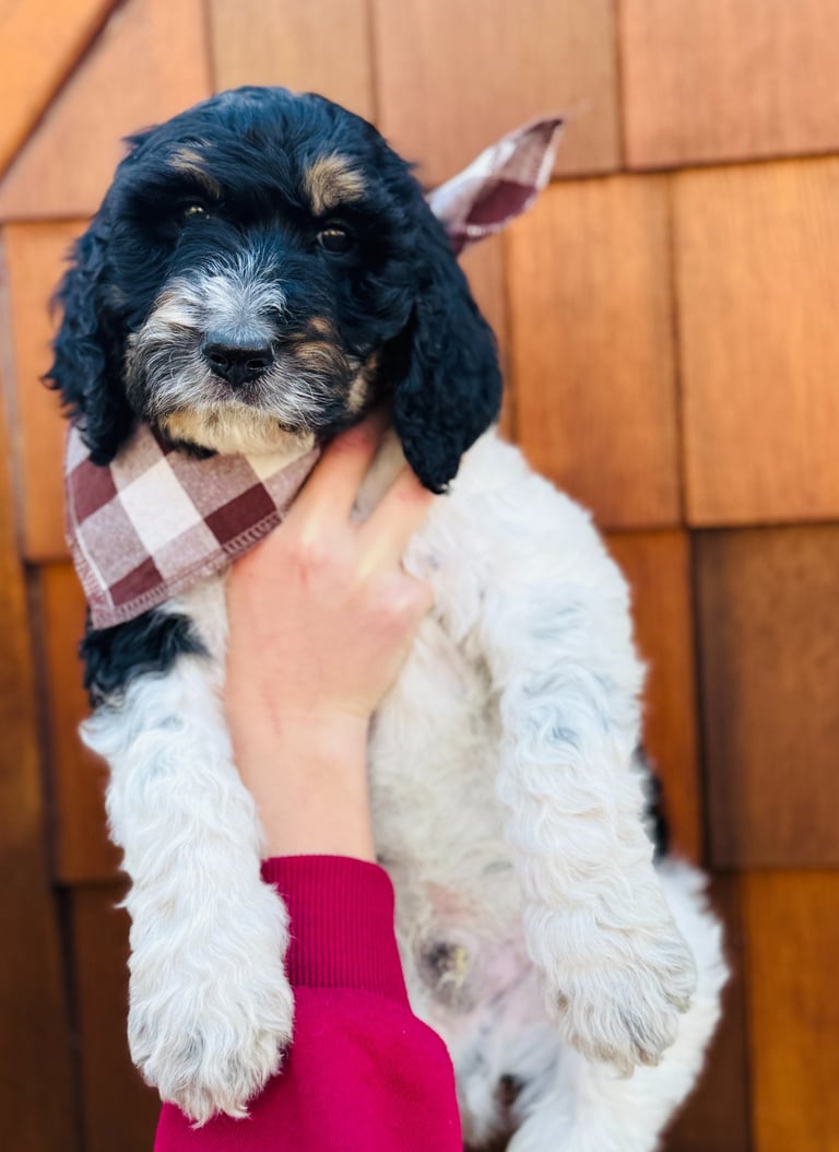 In Fall 2025, we welcomed Oreo's 2nd litter! 10 Beautiful Bernedoodles- 5 Boys + 5 Girls we named: Paul Bunyan, Lucette Bunyan, Betty Bunyan, Paul Jr., Babe the Blue Ox, Johnny Appleseed, Daniel Boone, Calamity Jane, Davy Crockett and Sally Ann Thunder Ann Whirlwind Crockett! They sound like a WILD crew, but they were oh, so sweet!