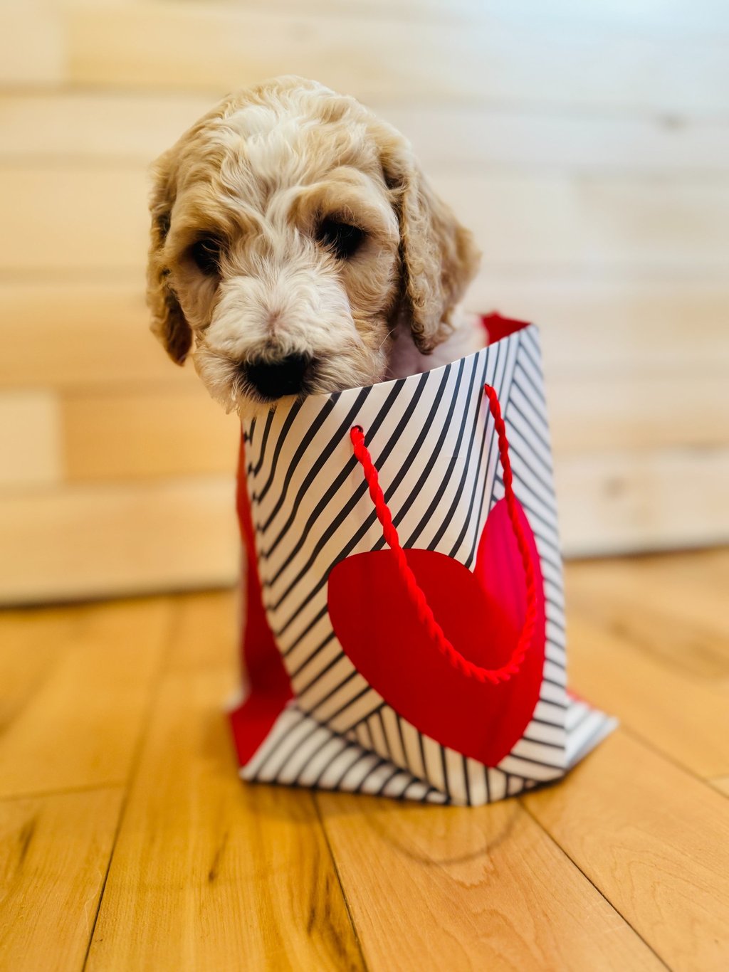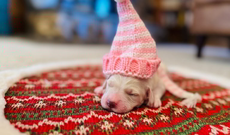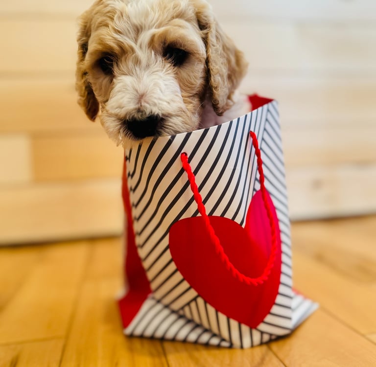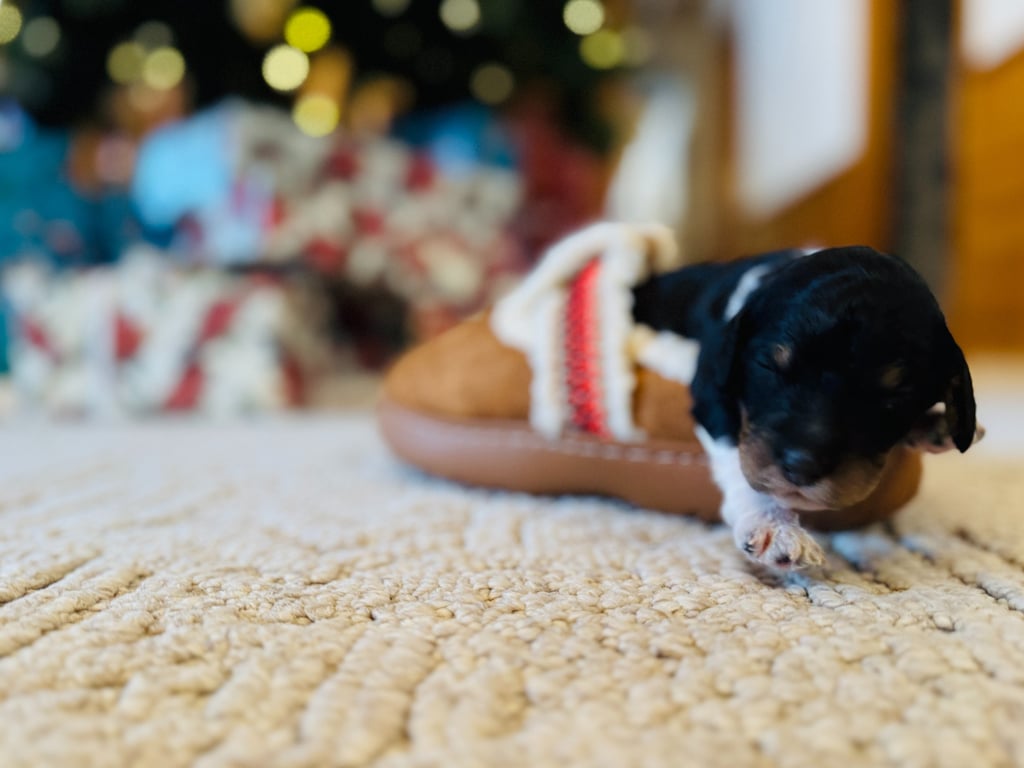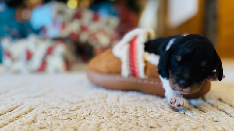 Mama Oreo was a gift under our family's Christmas tree, and now she is the gift that keeps on giving, to our family and yours! It felt so fitting for her first litter of puppies to also arrive right before Christmas! It was such a special gift to our family and made our Christmas all the sweeter. Her first litter of puppies went home on Valentine's Day, and were the sweetest little gifts to their new families! Oreo was made to be a Mama and loves her babies. We love sharing the joy and love she has brought to our family by helping raise up your sweet, loving companion!