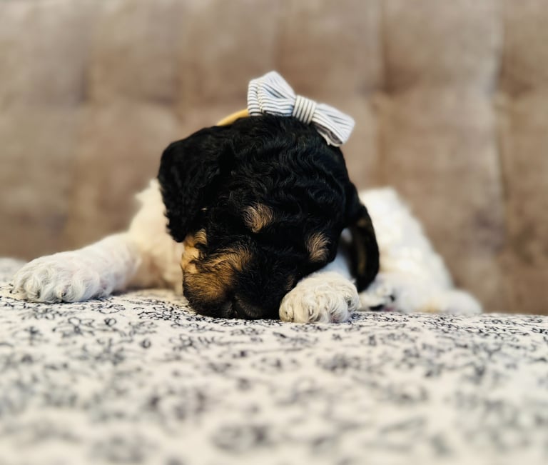 It is important to us to honor our beloved Mama Oreo by spacing out her litters of puppies and only having her mother a total of 3 litters. Her next (and final) litter is estimated to be due the end of 2026 and going home early 2027. More exact estimates will be available as that time draws closer. We have had so much interest in her adorable puppies, but since it's not always the right time for families to bring home their puppy, we are creating this Waitlist! Please reach out (218-821-4185) if you'd like more information on how to be added to our Waitlist.